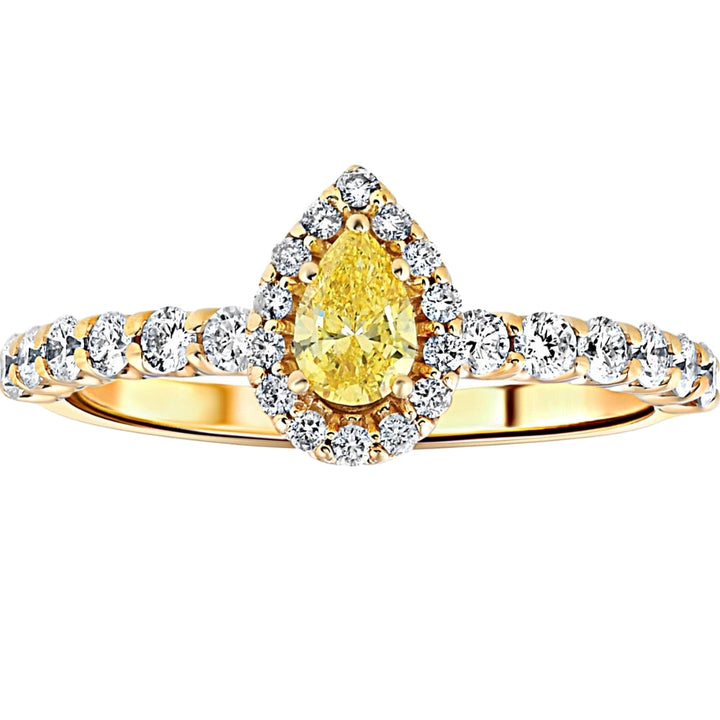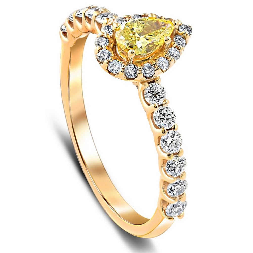 3/4 ct Fancy Yellow Pear Lab Grown Diamond Halo Engagement Ring Yellow Gold