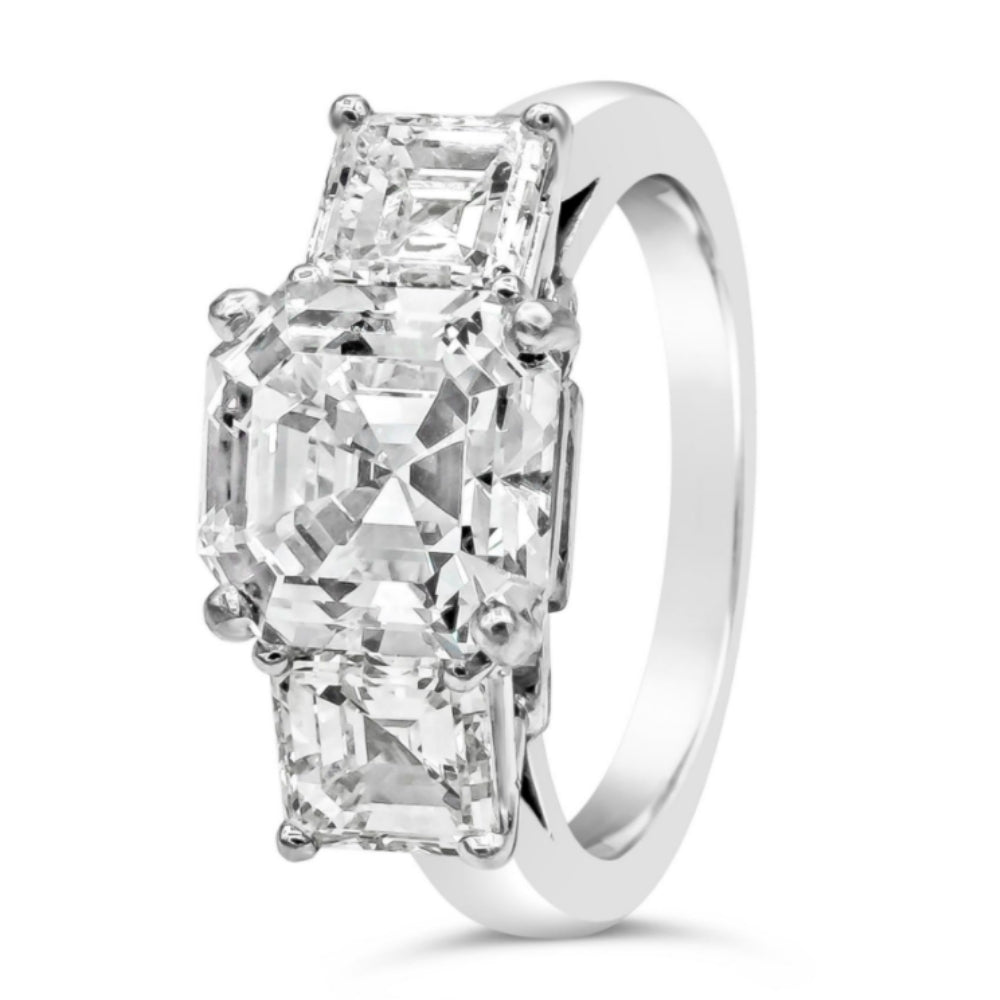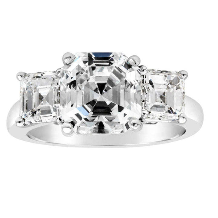 3 3/4 Ct Three Stone Asscher Cut Moissanite Engagement Ring 14k White Gold