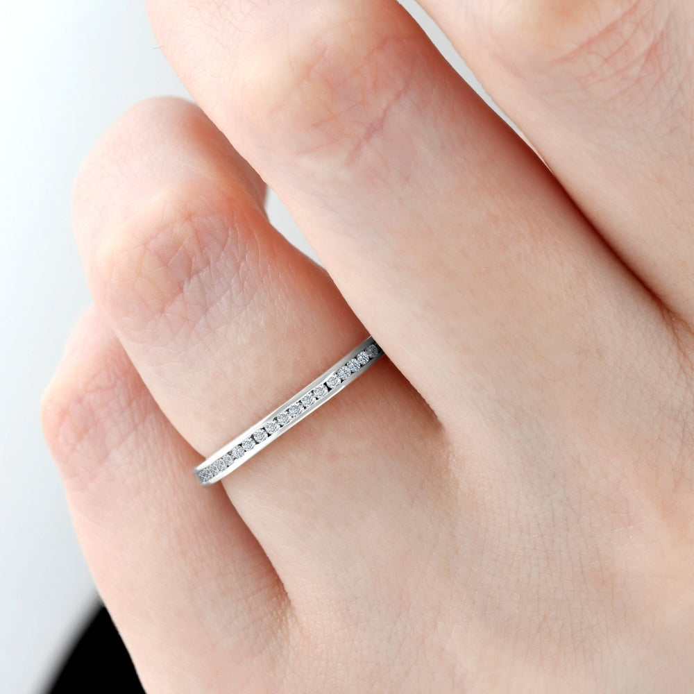 Handcrafted in solid 10k white gold with round cut genuine diamonds. Total carat weight: 1/2ct. Diamond clarity: I2-I3. Diamond color: H-I. Channel set with a high-polished finish.