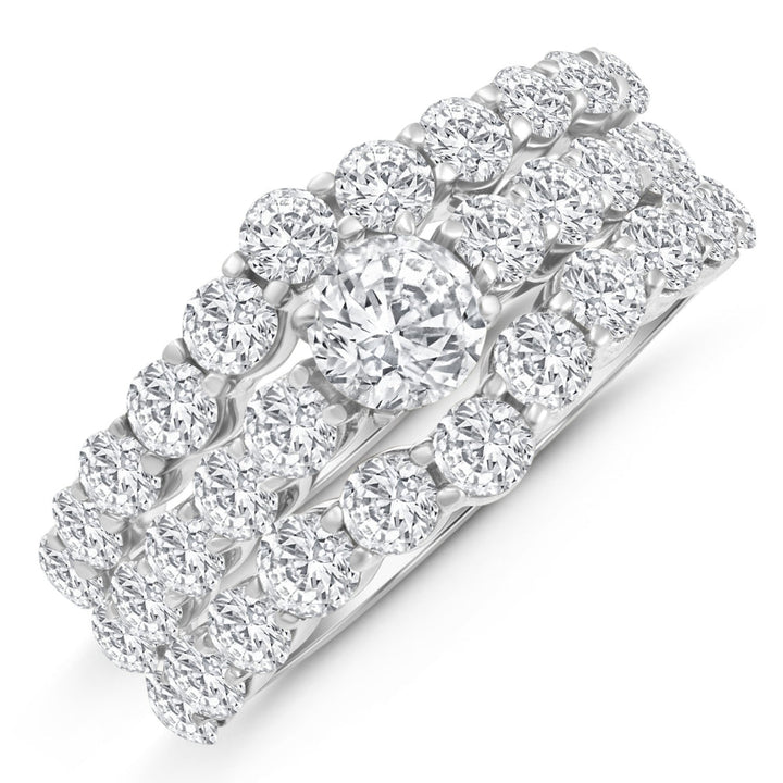 2 3/4 ct Diamond Trio Engagement Wedding Ring 14k White Gold Matching Wedding Set