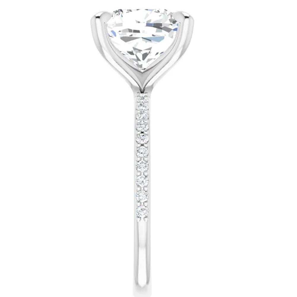 3 1/2 Cushion Moissanite and Diamond Engagement Ring 14k White Gold