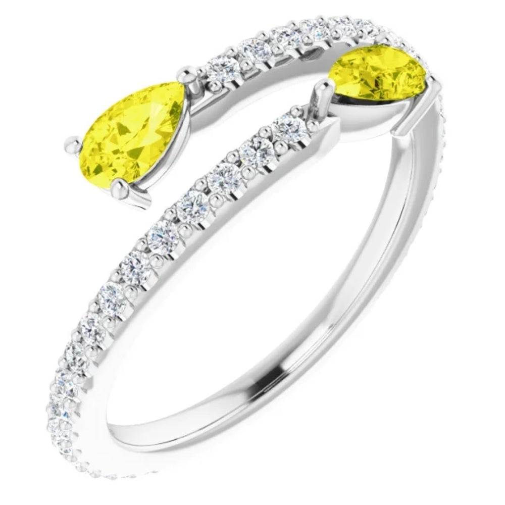 5/8 Ct Fancy Yellow Pear Shape Diamond 2-Stone Bypass Ring Lab Grown White Gold