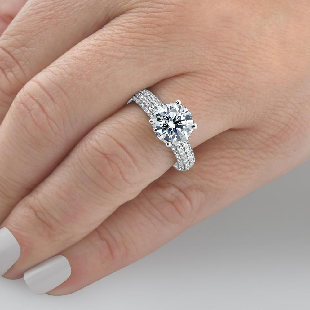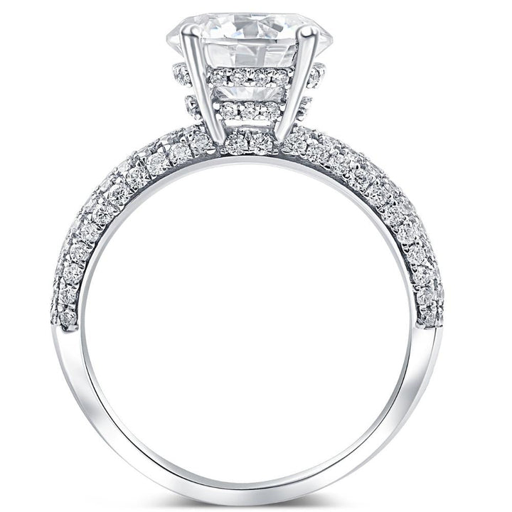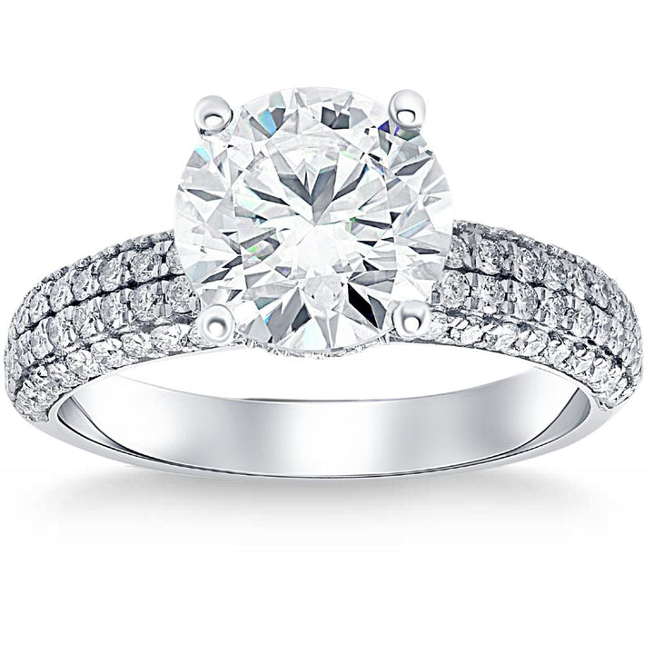 4 Ct Pave Round Diamond Engagement Ring in White Gold Lab Grown