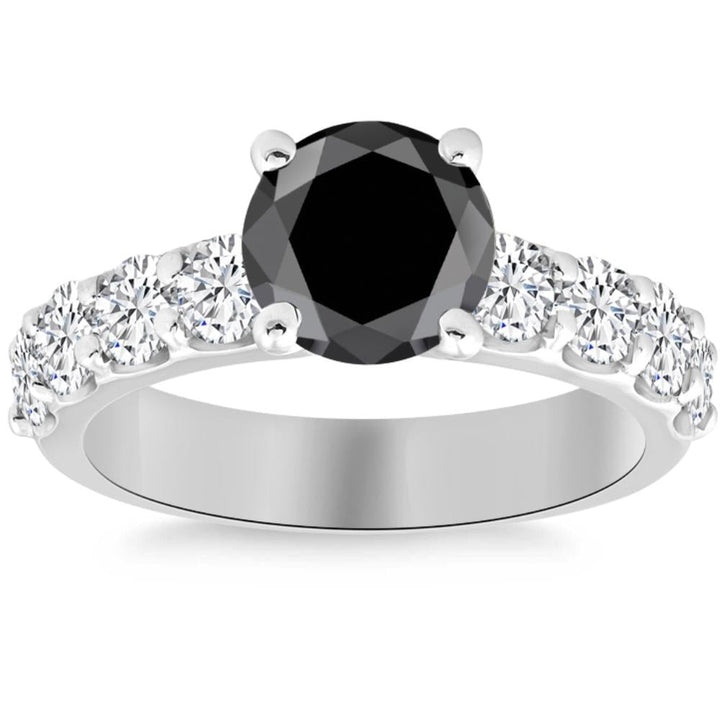 3 1/4 ct Black Moissanite & Diamond Engagement Ring in 10k White or Yellow Gold