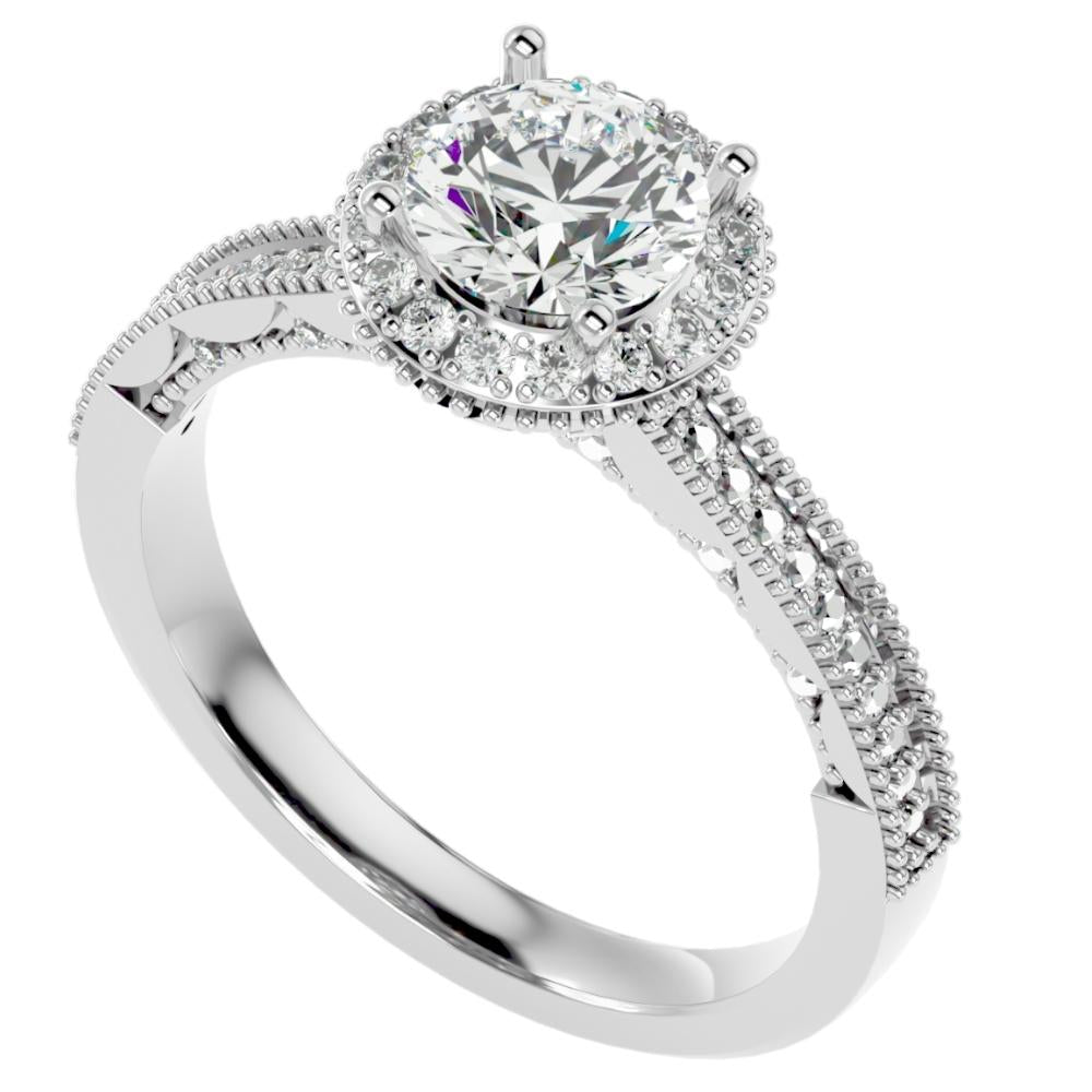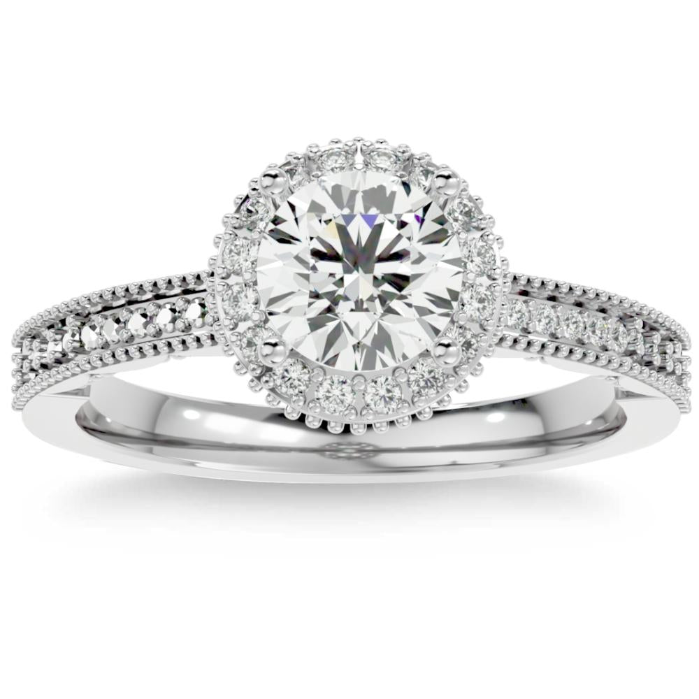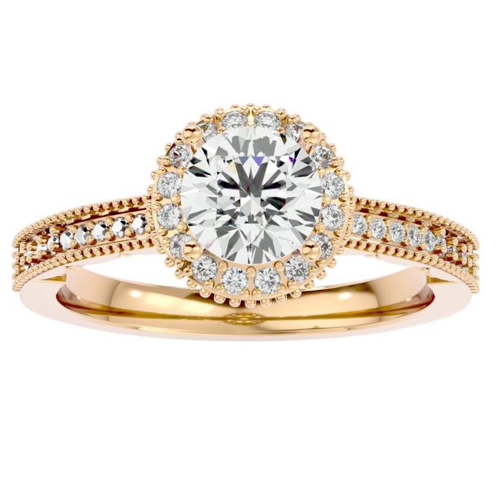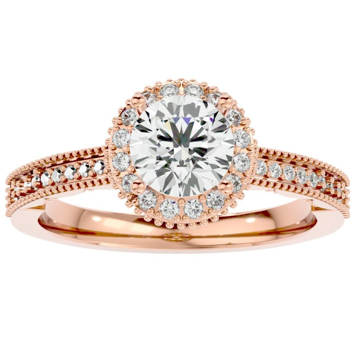 1 1/10Ct Vintage Diamond Moissanite Halo Engagement Ring White Yellow Rose Gold