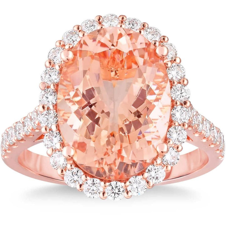 5 Ct Pink Topaz & Diamond Halo Ring in 10k Rose Gold