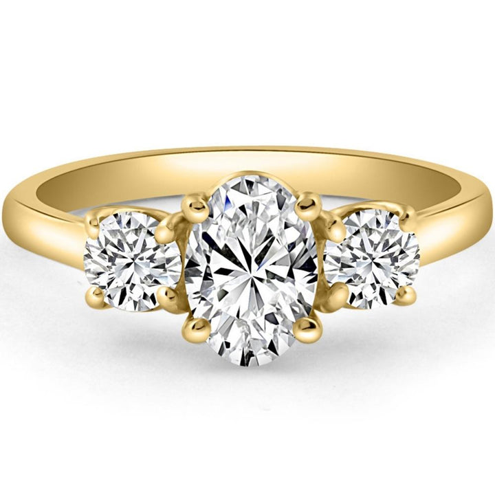 2 ct TW Oval Lab Grown 3-Stone Diamond Engagement Ring in White or Yellow Gold