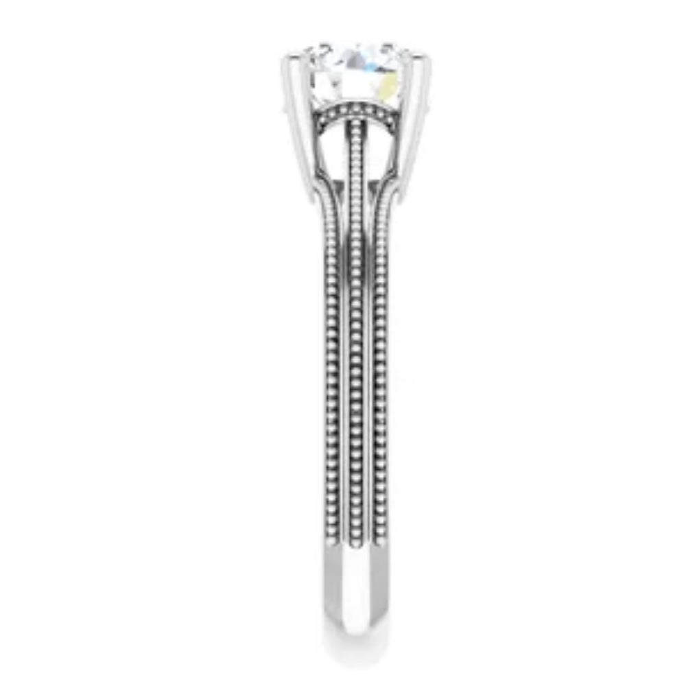 1 Ct Round Diamond Engagement Ring 14k White Gold Vintage Accent Enhanced