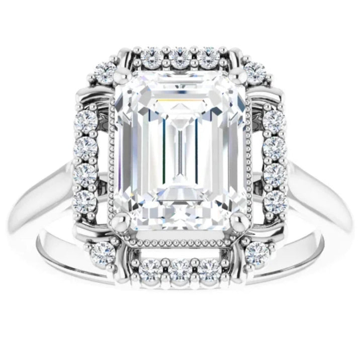 4 1/4 Ct Emerald Moissanite & Diamond Engagement Ring White Yellow or Rose Gold