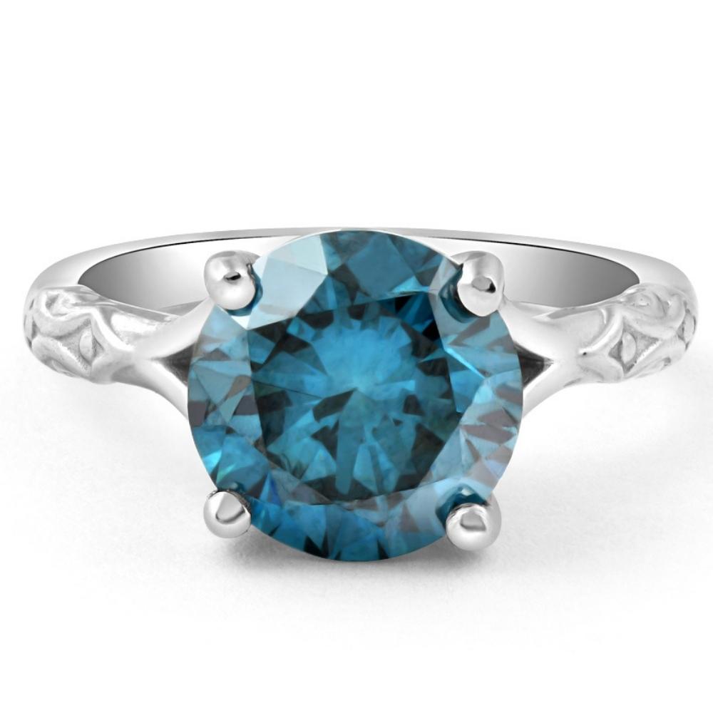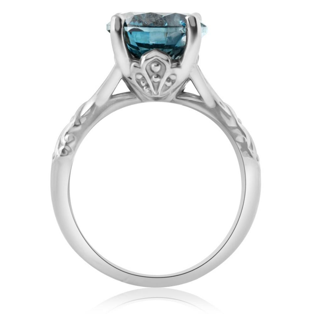 3Ct Blue Diamond Solitaire Vintage Engagement Ring Lab Grown in 10k White Gold