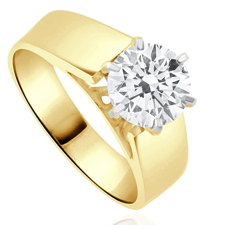 2 ct Round Moissanite Solitaire Engagement Ring 14k Yellow Gold