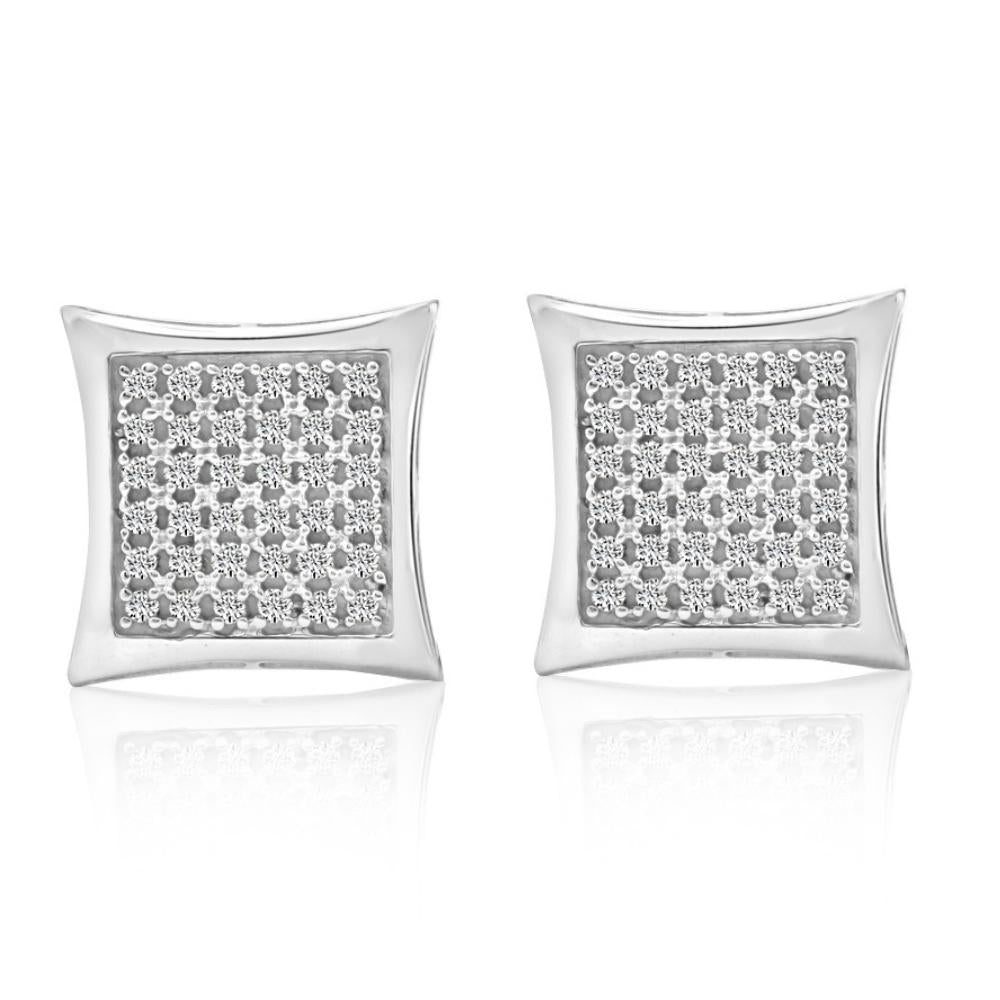 1/3Ct Natural Diamond Pave Square Framed Womens Earrings in White or Yellow Gold