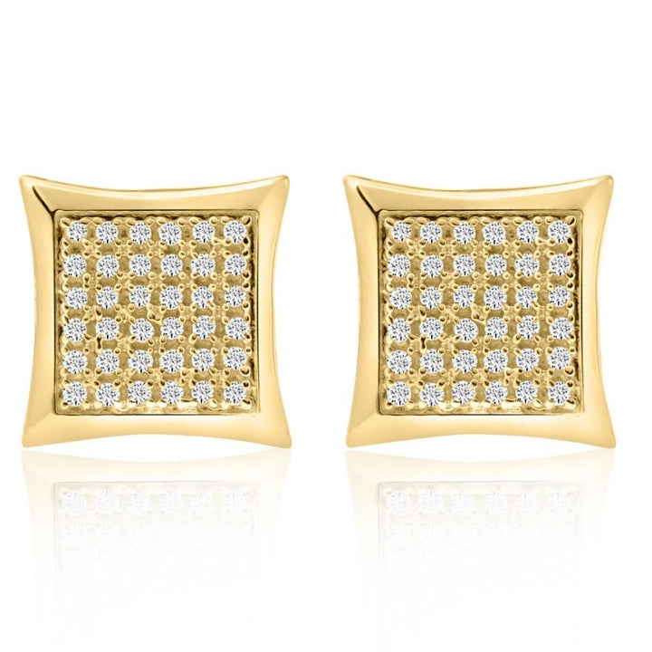 These 1/3Ct Natural Diamond Pave Square Framed Women's Earrings in White or Yellow Gold by Pompeii3 feature 72 round brilliant cut natural diamonds. The diamonds are pave set in a solid 10k gold square-framed design, offering a modern and sophisticated look. The screw back closure ensures a secure fit.