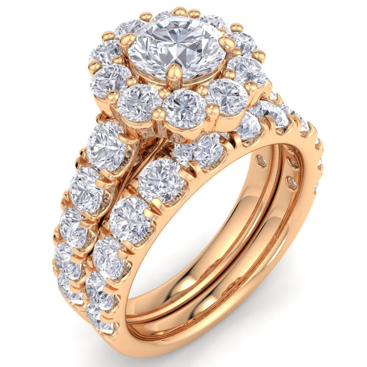 4 ct Diamond Halo Engagement Wedding Ring Set in White Yellow or Rose Gold