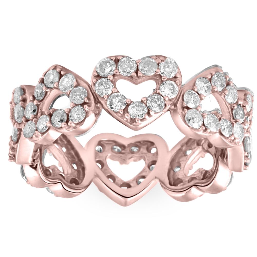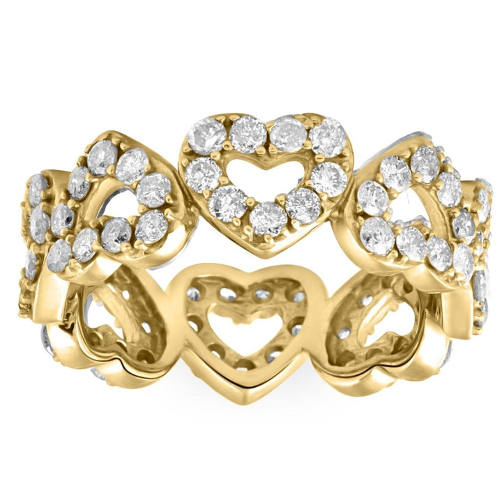 1 1/2 ct Diamond Heart Shaped Eternity Ring in White, Yellow, or Rose Gold