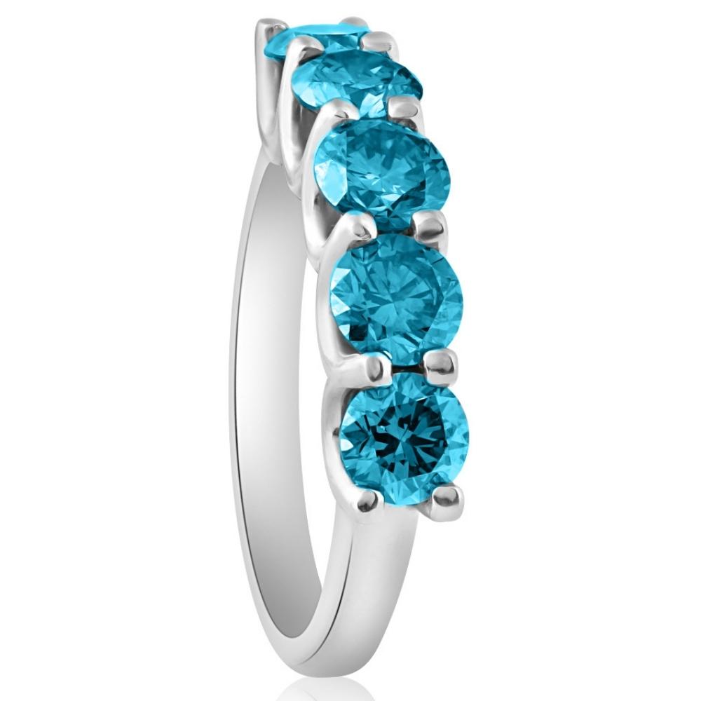 2 ct Blue Diamond Five Stone U Prong Wedding Ring in Gold Lab Grown