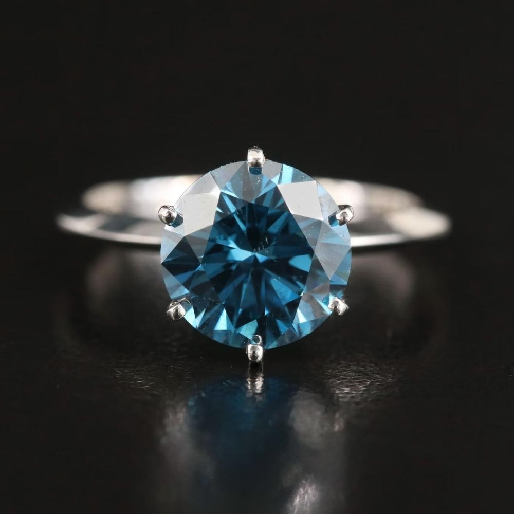 3 1/2 ct Blue Diamond Solitaire Engagement Ring Lab Grown in 14k White Gold