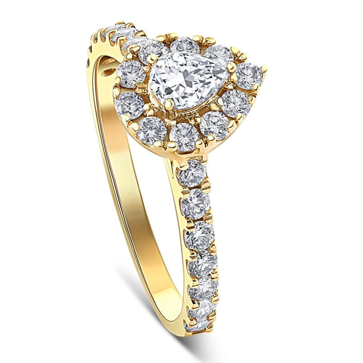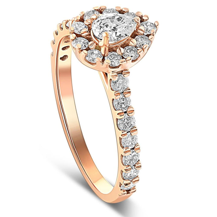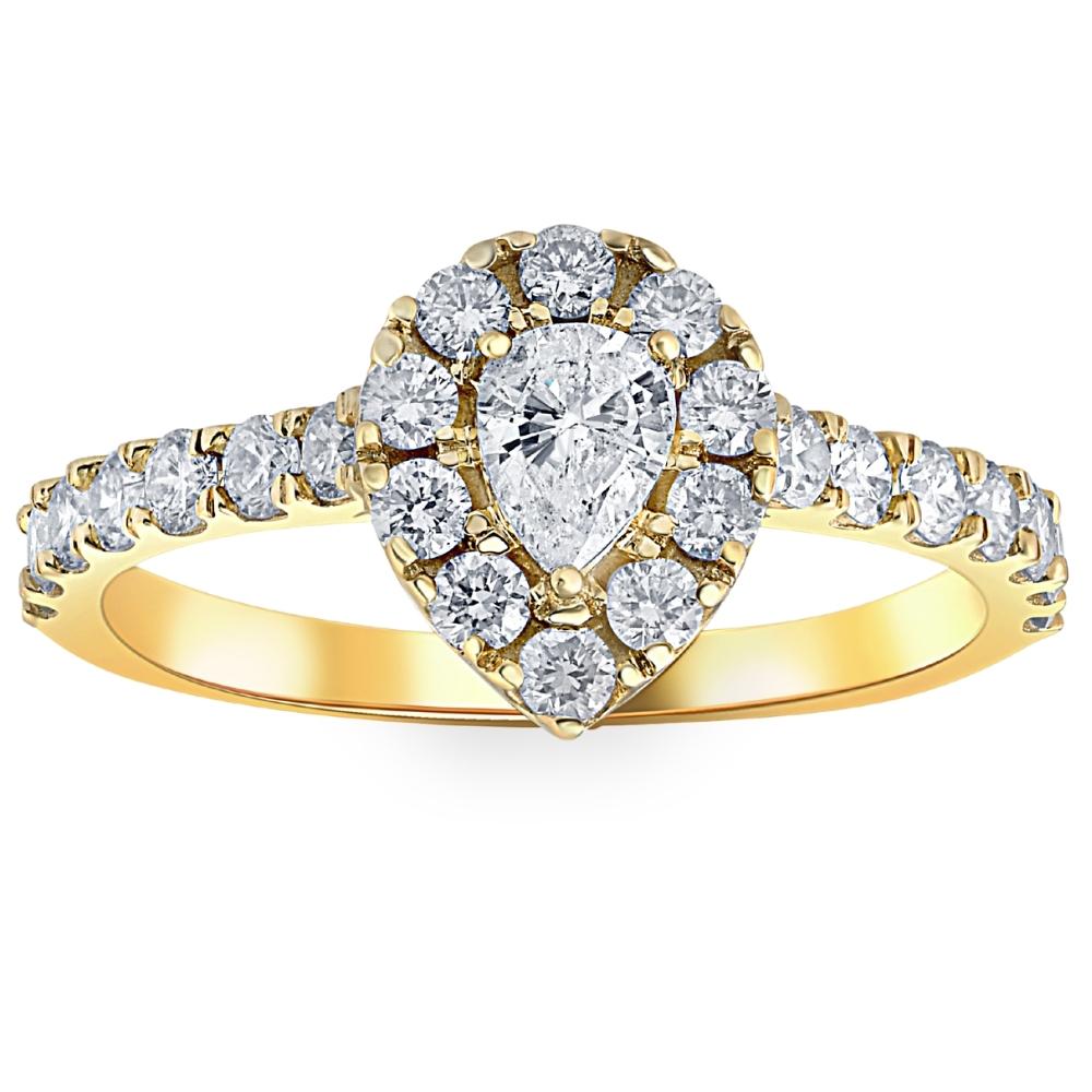 1Ct Pear Shape Diamond Halo Engagement Ring in White, Yellow, or Rose Gold