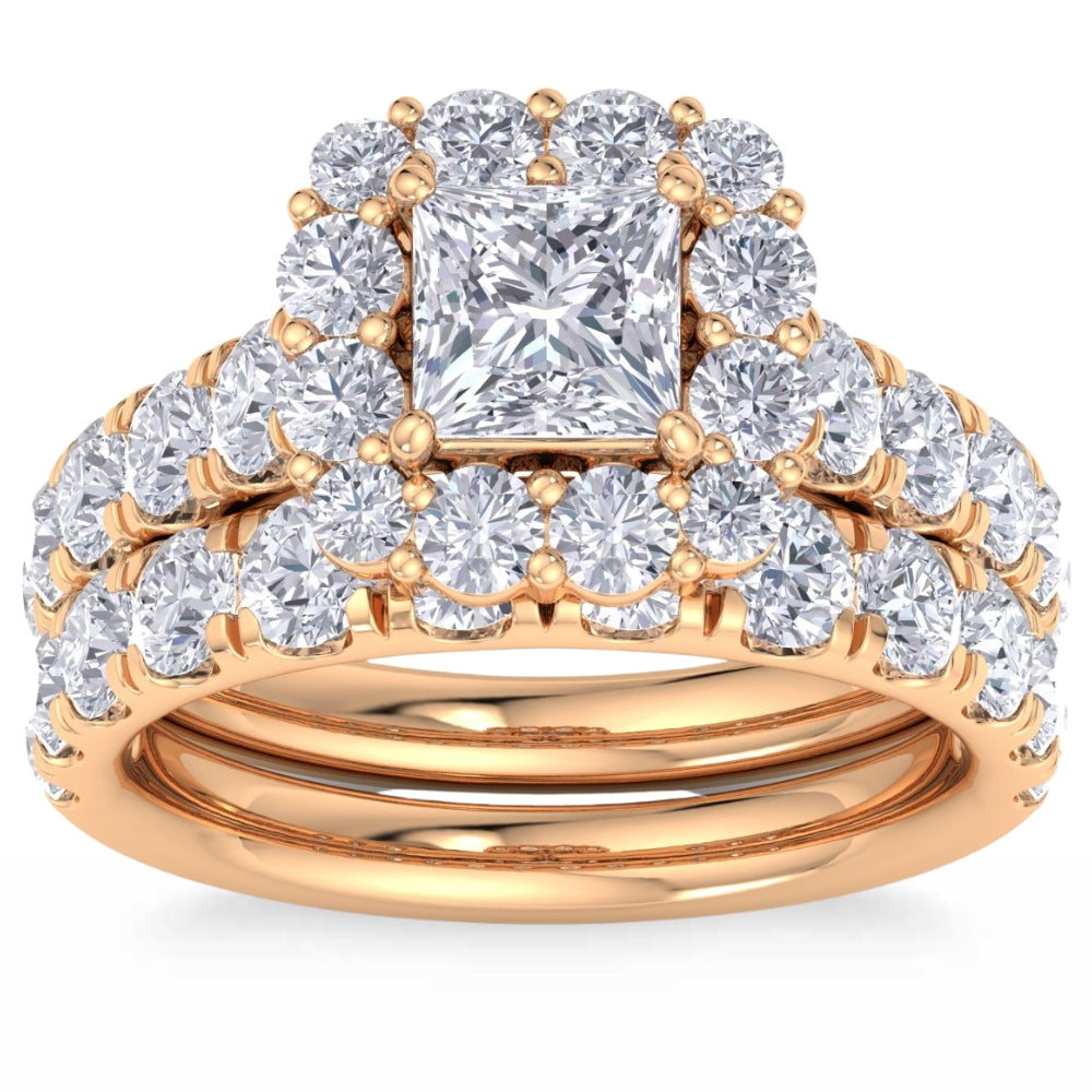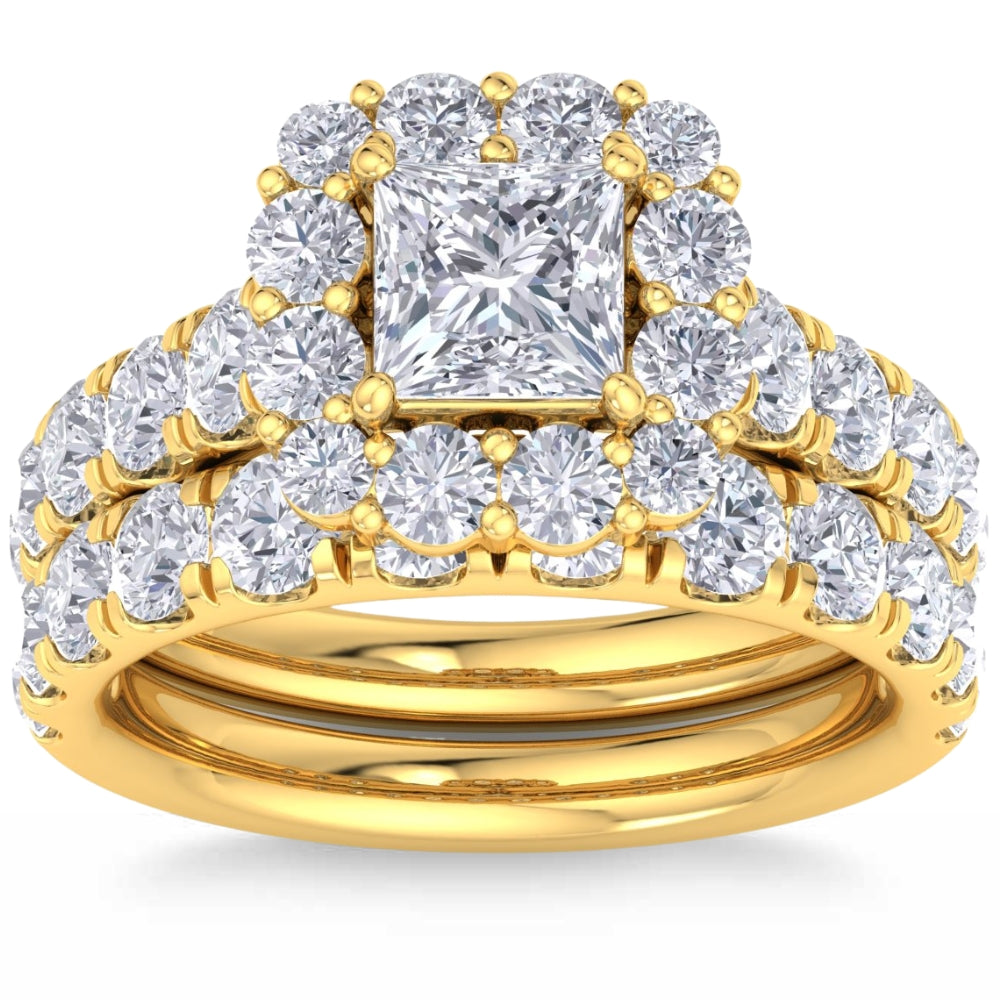 5Ct Princess Cut Diamond Engagement Matching Wedding Ring Set 10k Gold Lab Grown