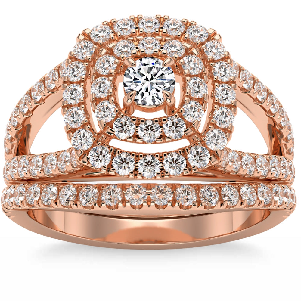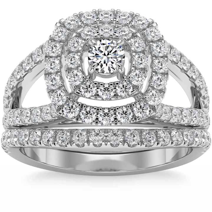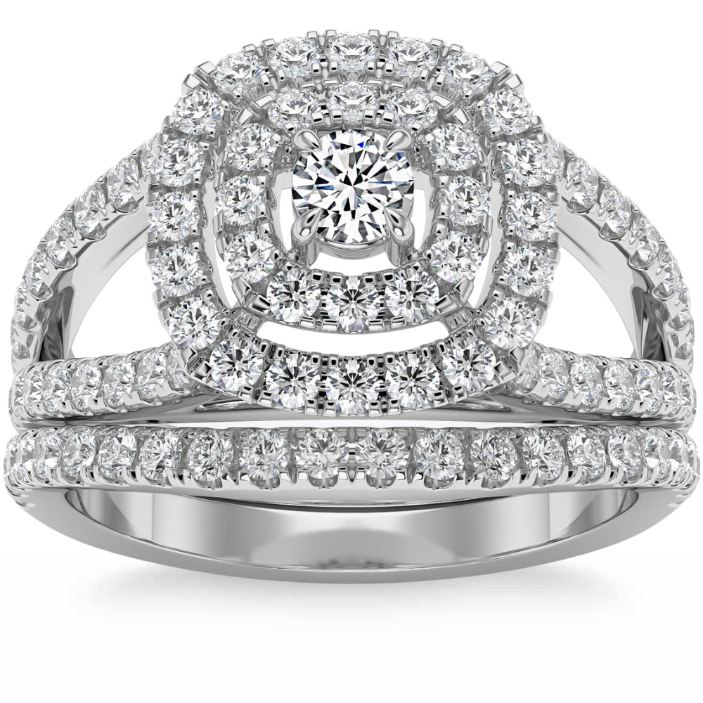 1 3/4 ct Natural Diamond Cushion Halo Engagement Wedding Ring Set in 10k Gold