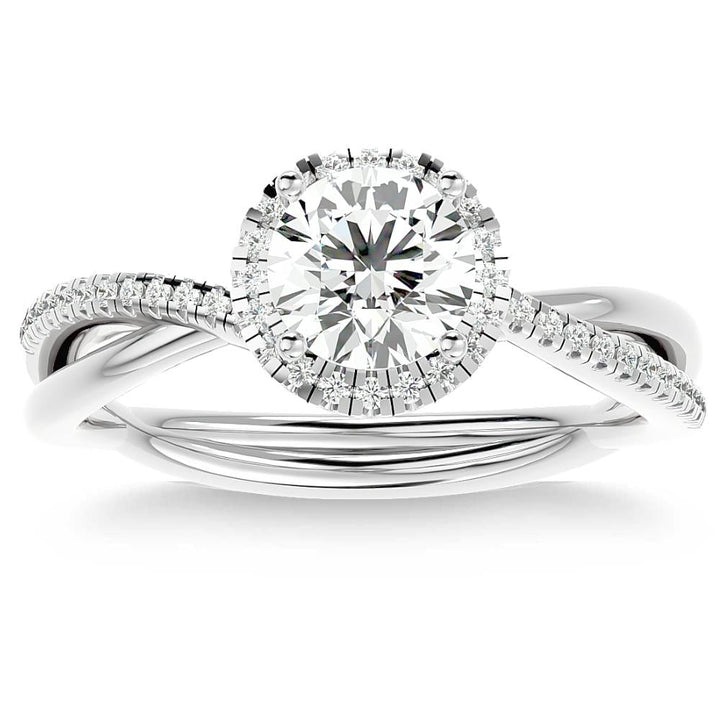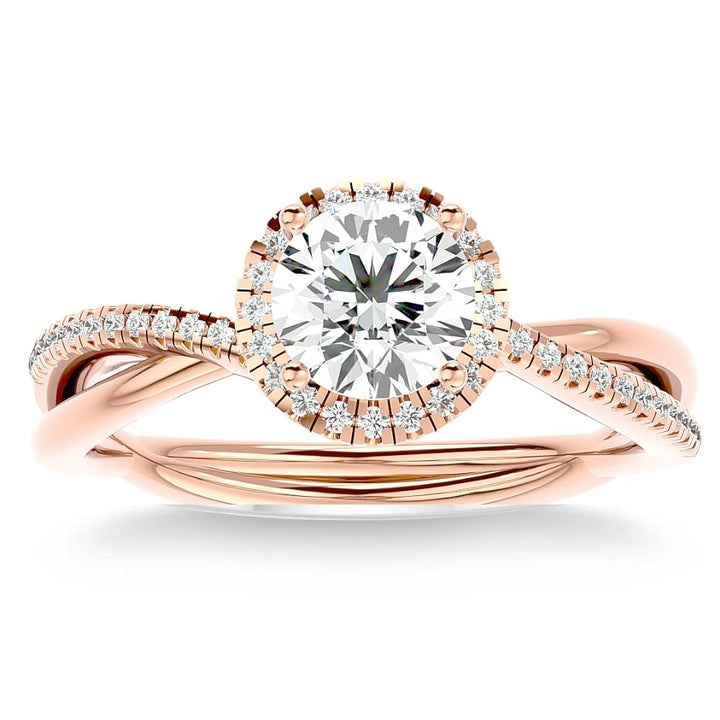 1 1/5Ct TW Moissanite & Diamond Halo Crossover Engagement in Ring 10k Gold