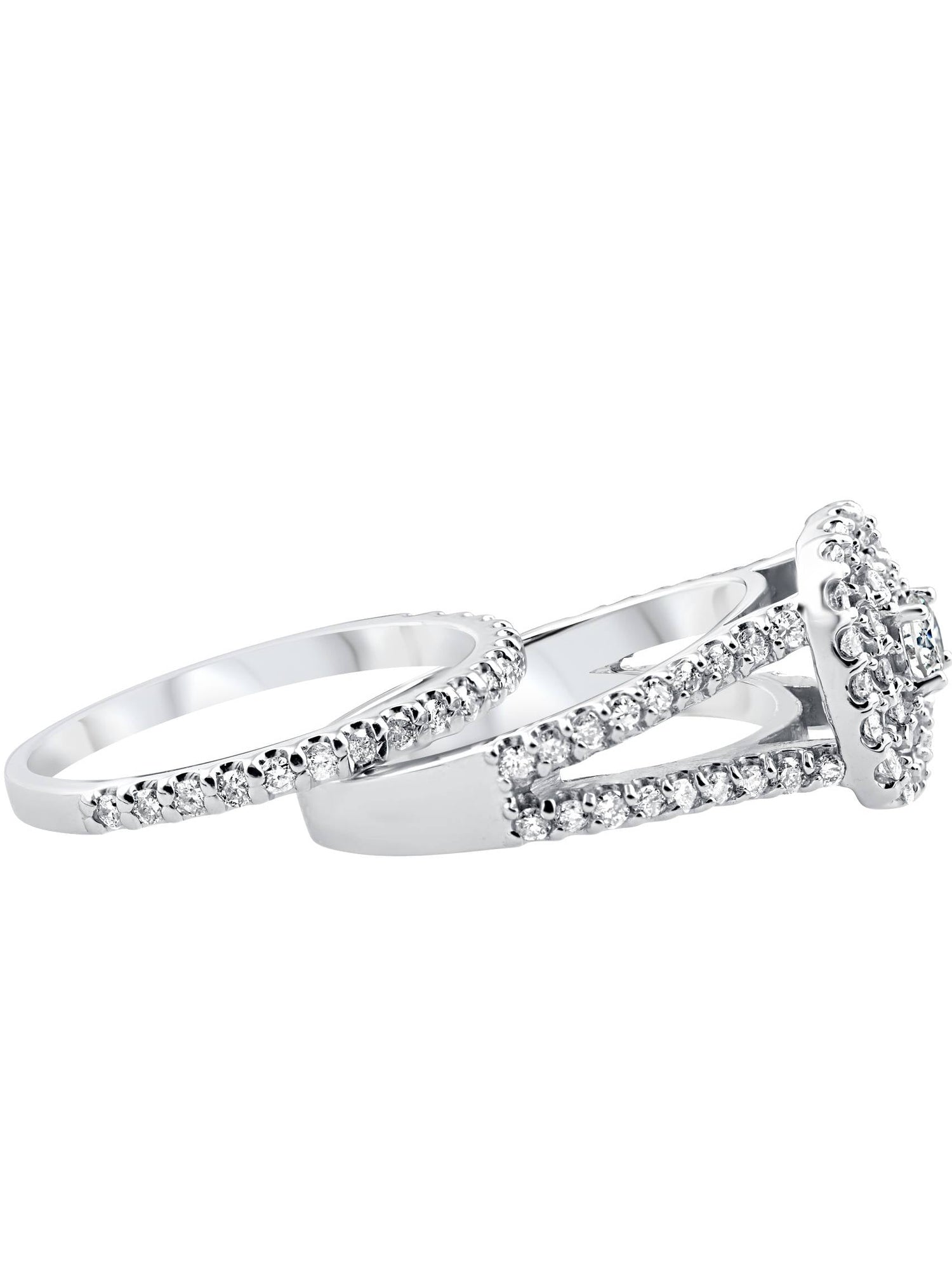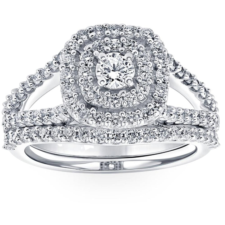 1Ct Lab Grown Diamond Cushion Halo Engagement Wedding Ring Set 10K White Gold