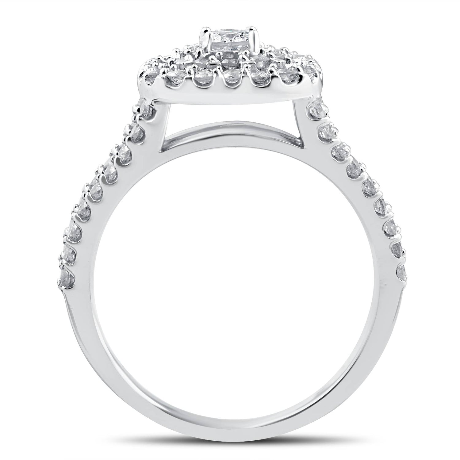 This 1Ct Lab Grown Diamond Cushion Halo Engagement Wedding Ring Set by Pompeii3 is a stunning and timeless set that includes a matching wedding ring. The centerpiece is a round brilliant cut lab-grown diamond set within a cushion halo, creating a stunning visual effect. The diamonds are prong set in solid 10k white gold, and the high-polished mountings bring out the sparkle and elegance of the diamonds. This classic design is both durable and incredibly sparkly, making it perfect for a lifetime of love and commitment.