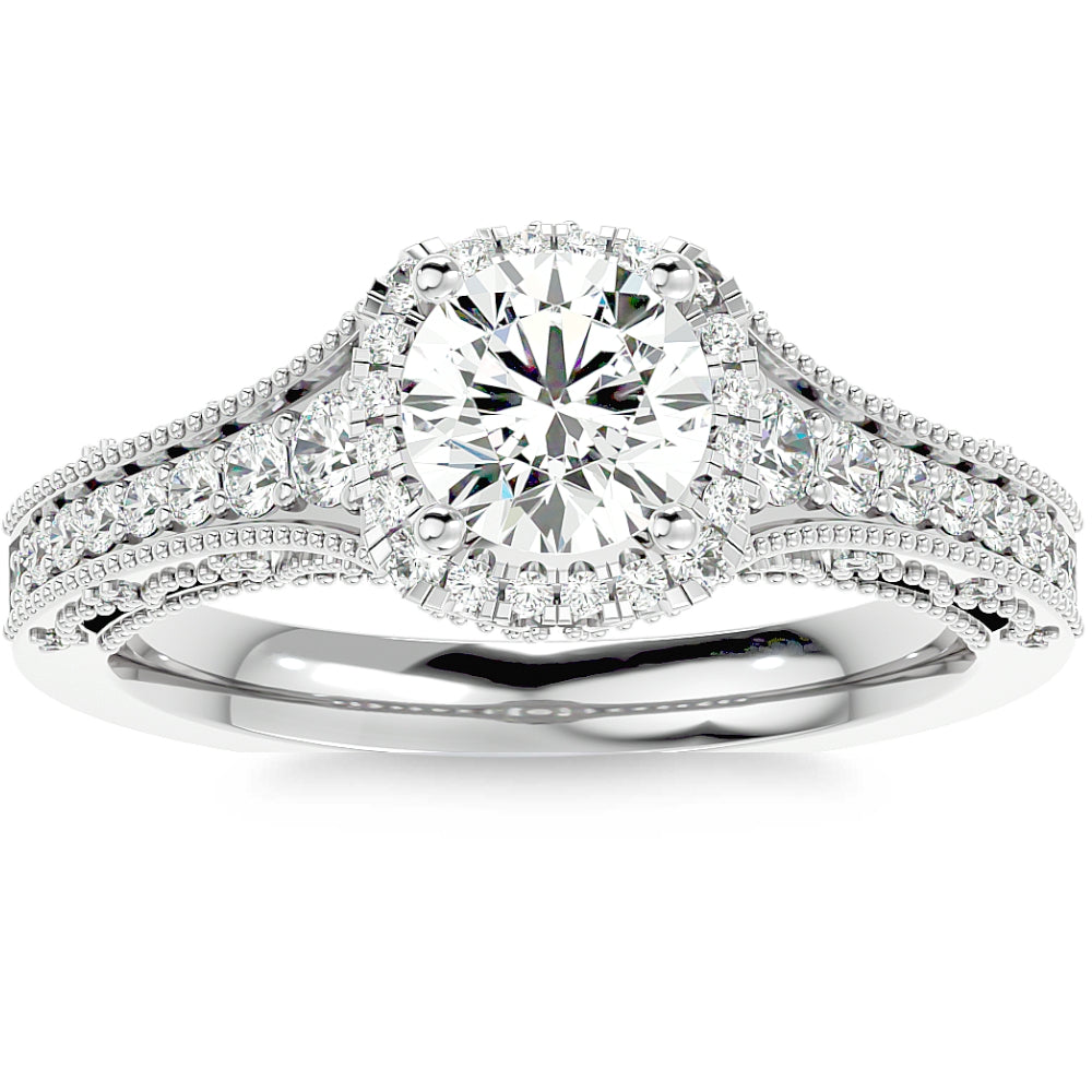 1 3/4 ct Diamond & Moissanite Halo Engagement Ring in 10k Gold