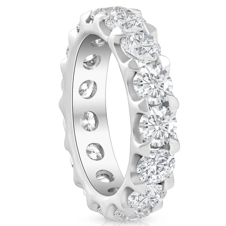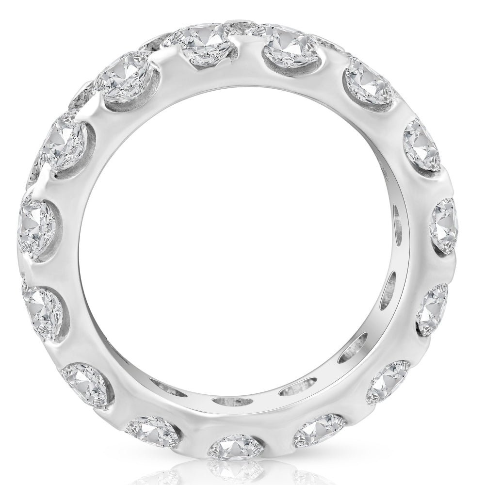 This 5 Ct Moissanite Eternity Ring by Pompeii3 features round-cut genuine moissanite stones, prong set in solid 10k gold. The high-polished mountings make this ring ideal for stacking with other rings or wearing alone for a bold statement of brilliance and elegance.