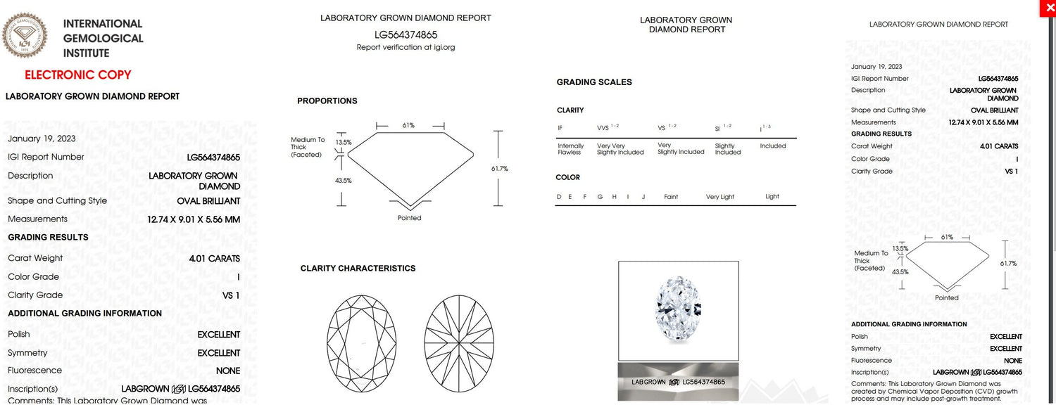 Crafted in 14k yellow gold with a certified 4ct oval lab-grown diamond.