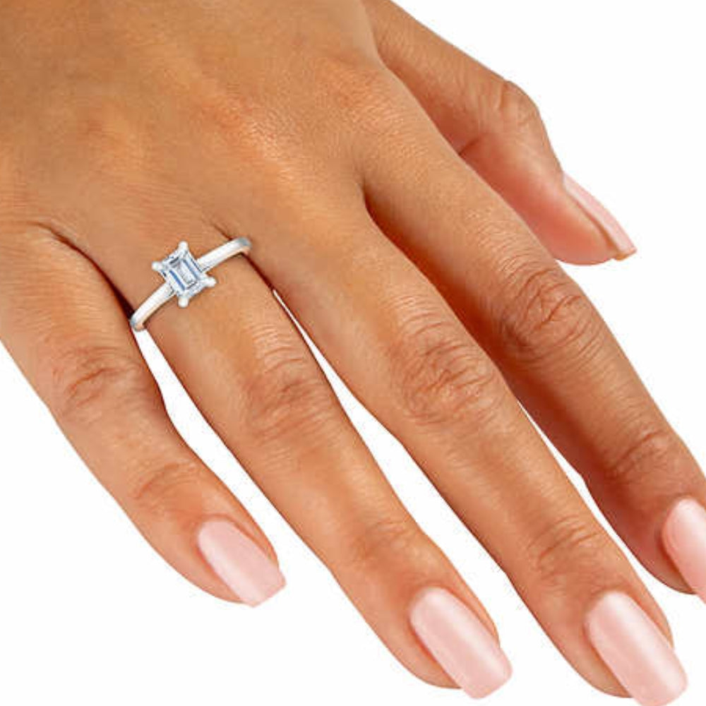 Platinum 1Ct Emerald Cut Diamond Solitaire Engagement Ring Lab Grown