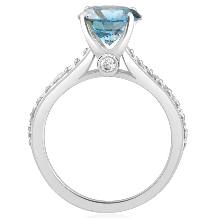 This 2Ct Round Brilliant Cut Blue Diamond Engagement Ring by Pompeii3 offers bold elegance. Featuring a stunning 1 5/8ct blue diamond accented with white diamonds in a timeless white gold setting.
