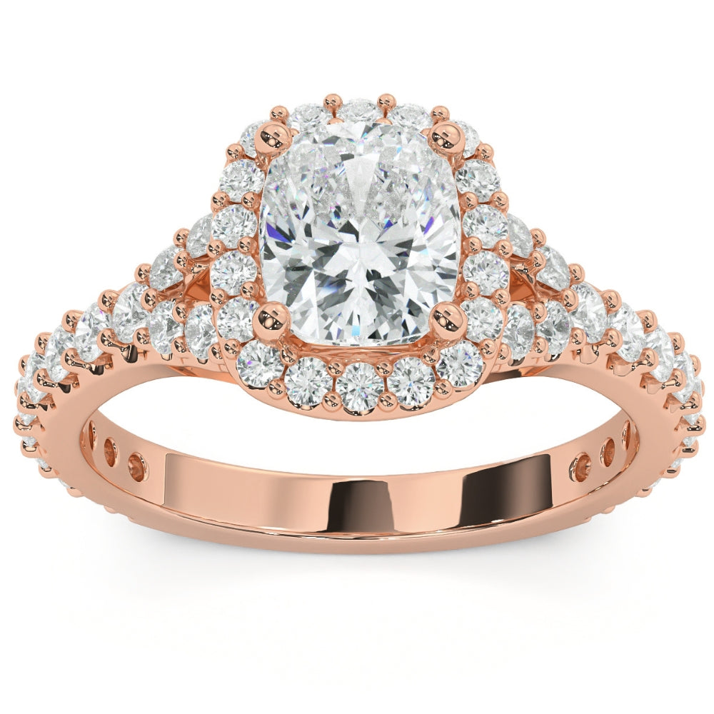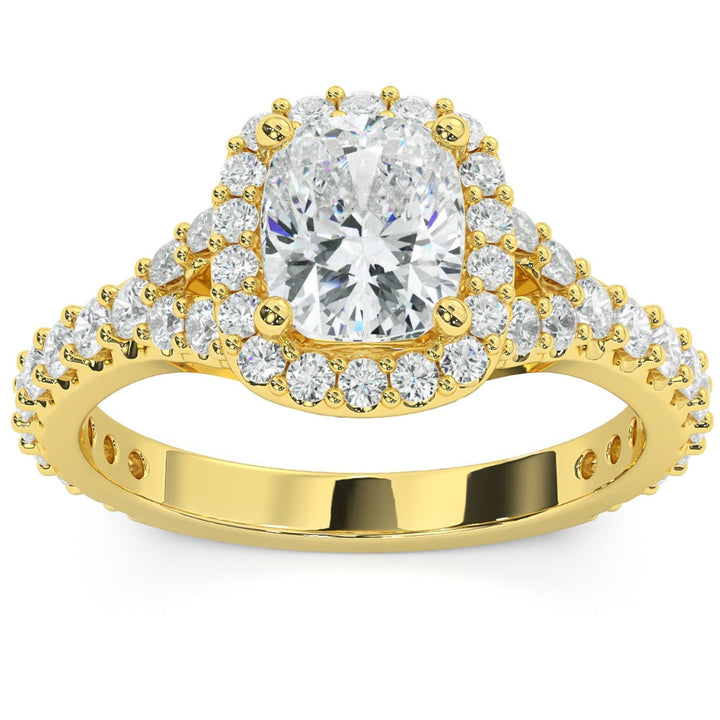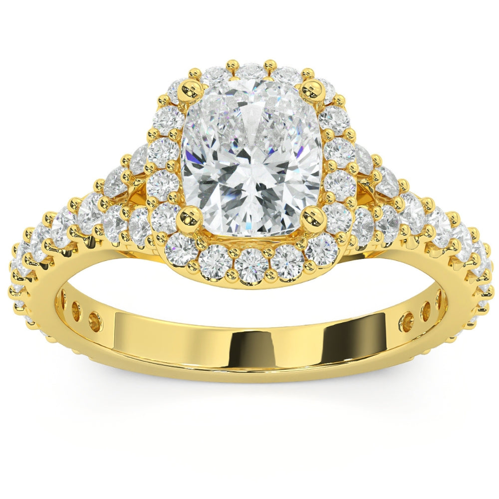 2 ct Cushion Halo Lab Grown Diamond Engagement Ring in 14k Gold