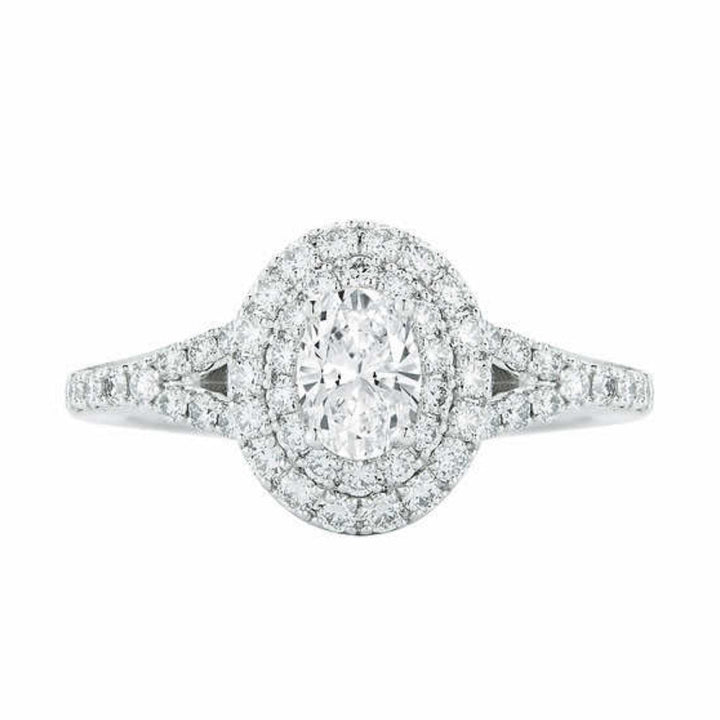 1 Ct Lab Grown Oval Diamond Halo Engagement Ring 14k White Gold