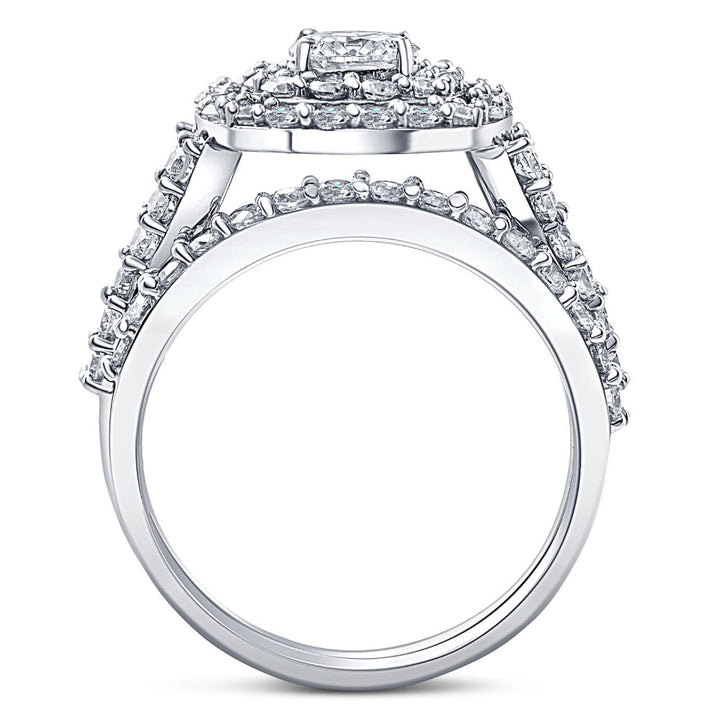 2 Ct TW Diamond Engagement Cushion Halo Engagement Ring Set White Gold Lab Grown