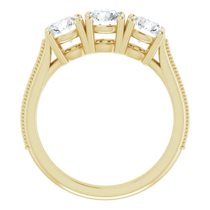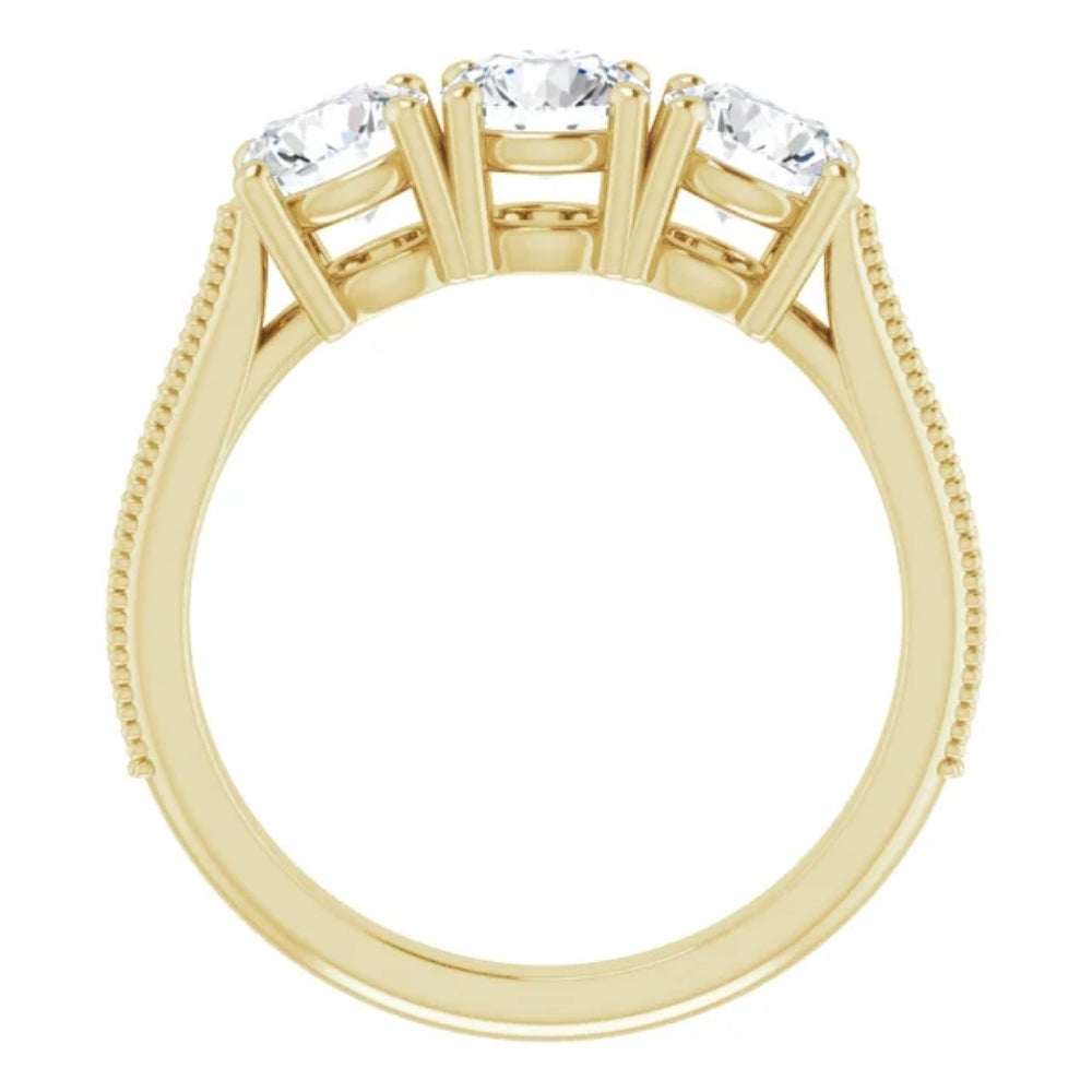 1 1/2 Ct Three Stone Lab Grown Diamond Engagement Anniversary Ring Yellow Gold