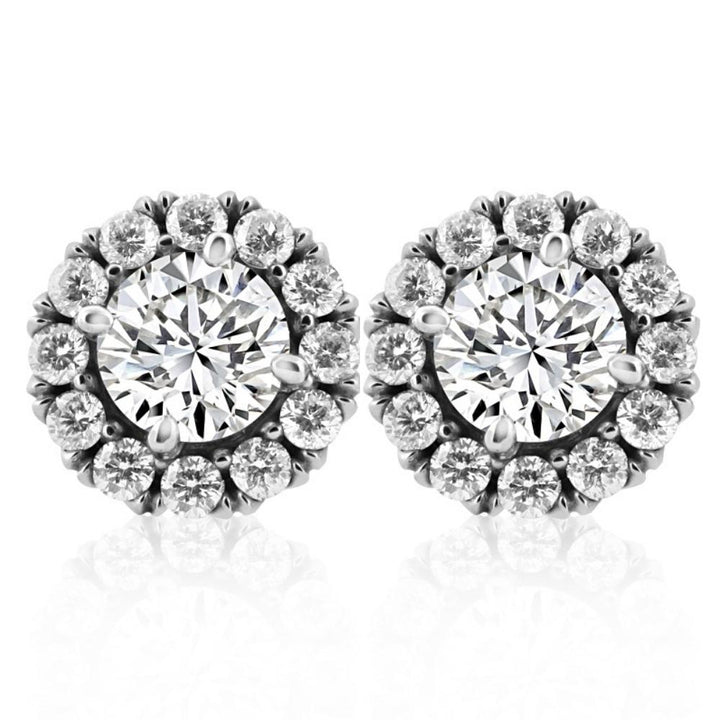 3 Ct Round Halo Diamond Studs 14k White Gold Enhanced 11.5mm