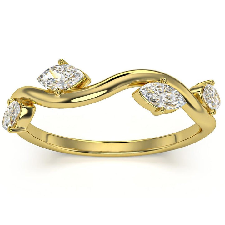 This 1/2Ct Marquise Diamond Wedding Vine Stackable Ring by Pompeii3 features four marquise cut natural diamonds, set in solid high-polished 10k gold. It's delicate design makes it perfect for stacking with other rings or pairing with an engagement ring, offering versatile elegance and timeless beauty.