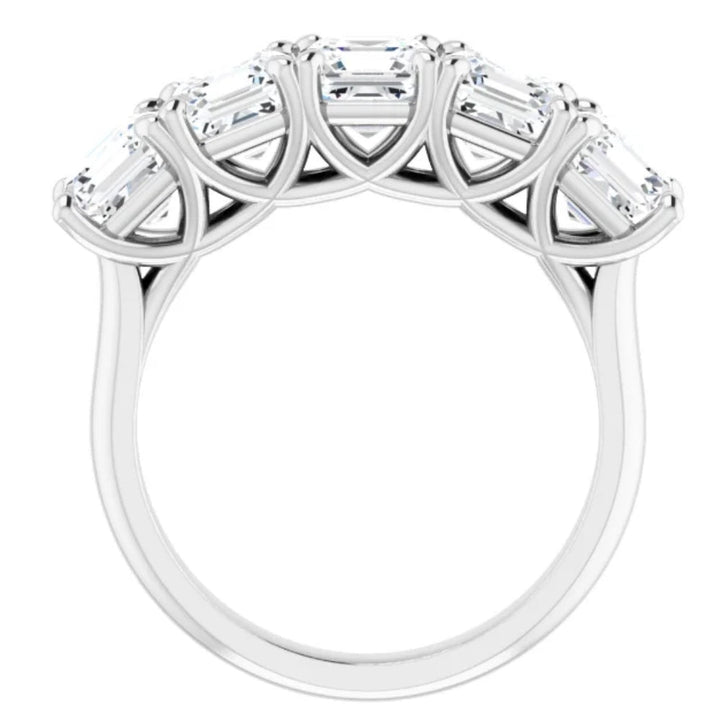 5Ct Asscher Cut Moissanite Five Stone Wedding Ring Anniversary Band White Gold