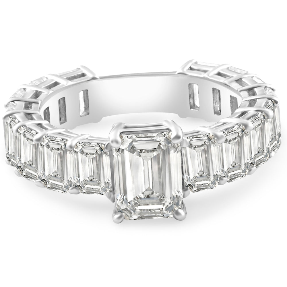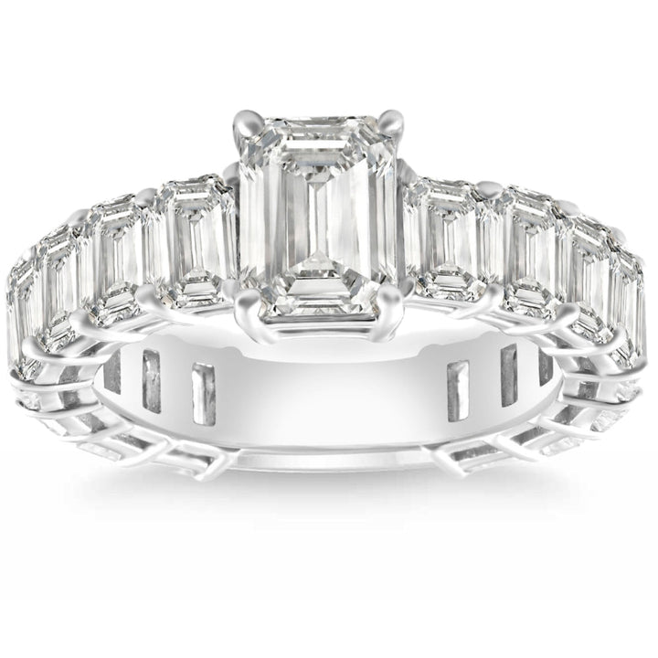 VS 7 1/2 ct Emerald Cut Diamond Engagement Ring 3/4 Eternity 14k Gold Lab Grown