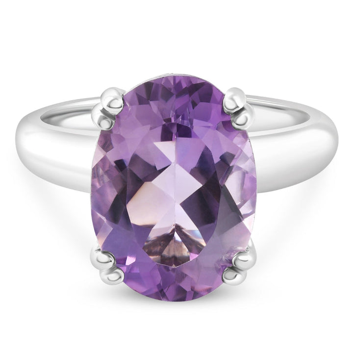 Set in solid 10k white gold with a 4ct oval amethyst (10x8mm).