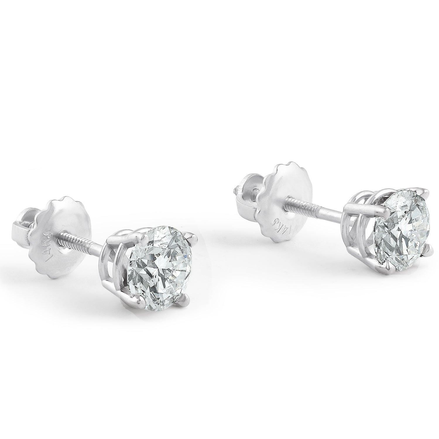Certified 1.00Ct Natural Round Screw Back Diamond Studs 14k Gold