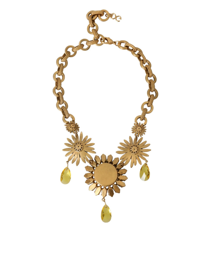 Dolce & Gabbana Tone Brass Sunflower Crystal Embellished Women's Necklace