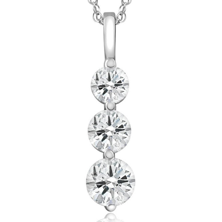 2 Ct Three Diamond Pendant 14K White Gold 3 Stone Lab Grown Necklace
