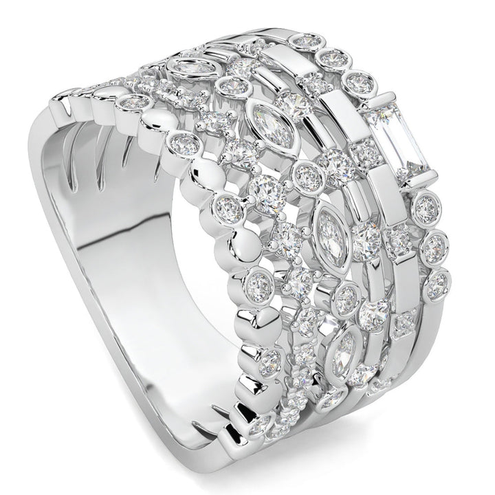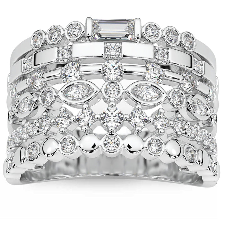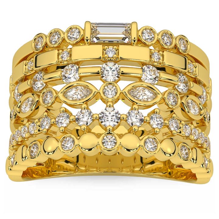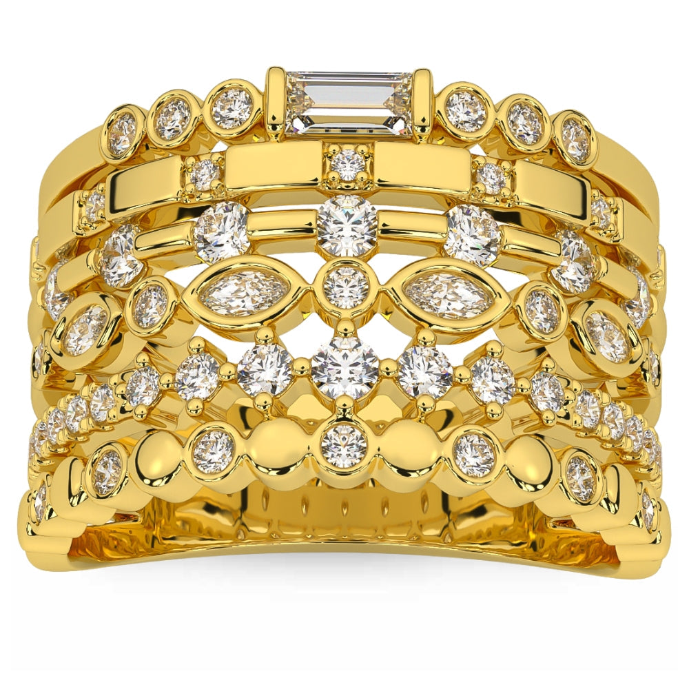 This 1Ct Stackable Diamond Ring by Pompeii3 is bold and distinctive. Featuring 48 diamonds, this 12mm wide ring creates the illusion of stacked bands in one seamless gold design.