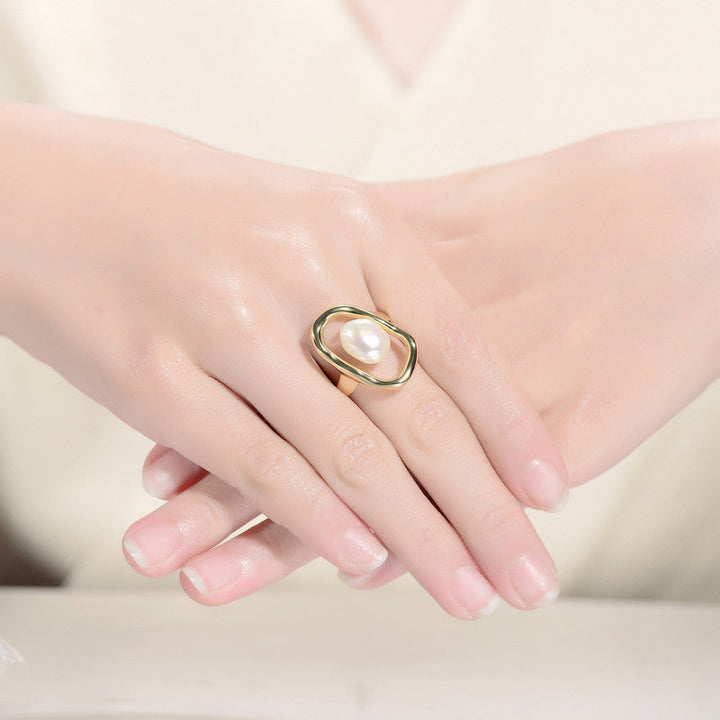 Sterling Silver 14k Gold Plated with Genuine Freshwater Pearl Outline Framed Ring