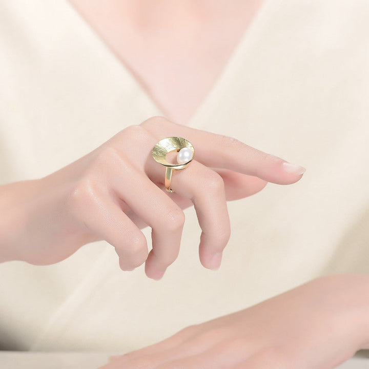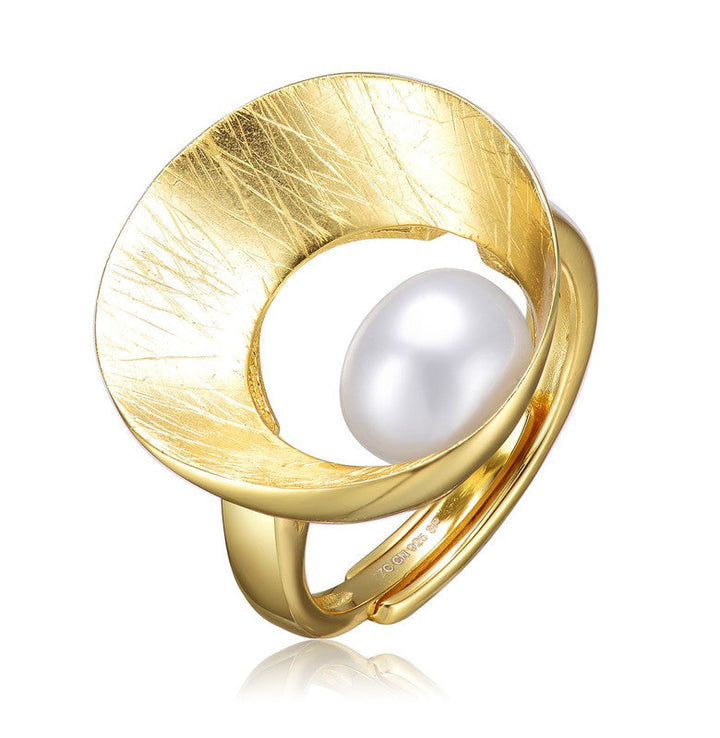 Sterling Silver 14k Gold Plated with Genuine Freshwater Pearl Geometric Ring