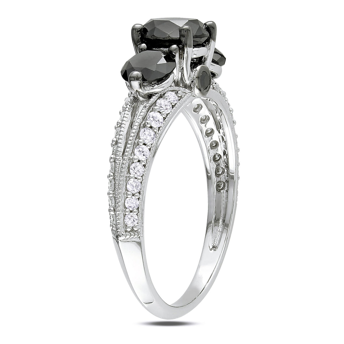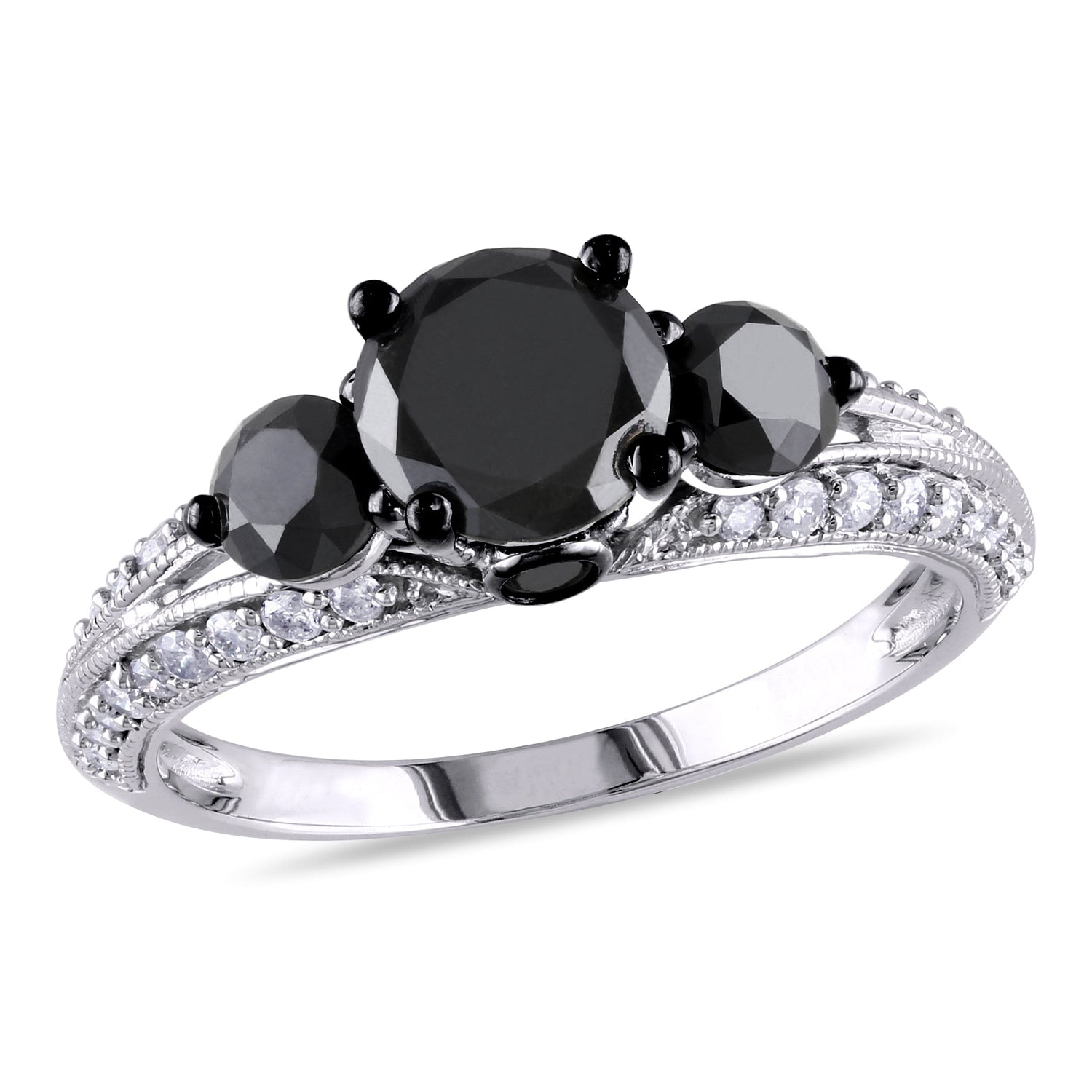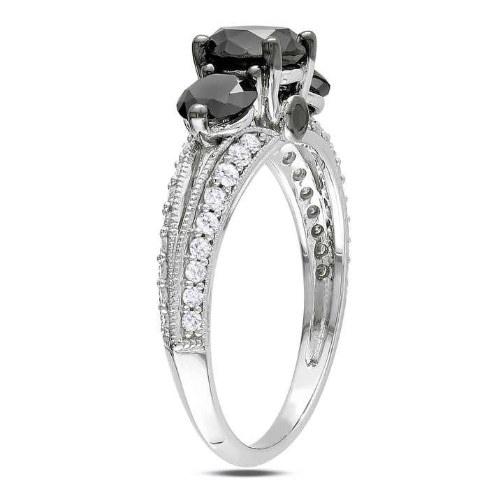 2 ct TW Black and White 3-Stone Diamond Engagement Ring in 10k White Gold