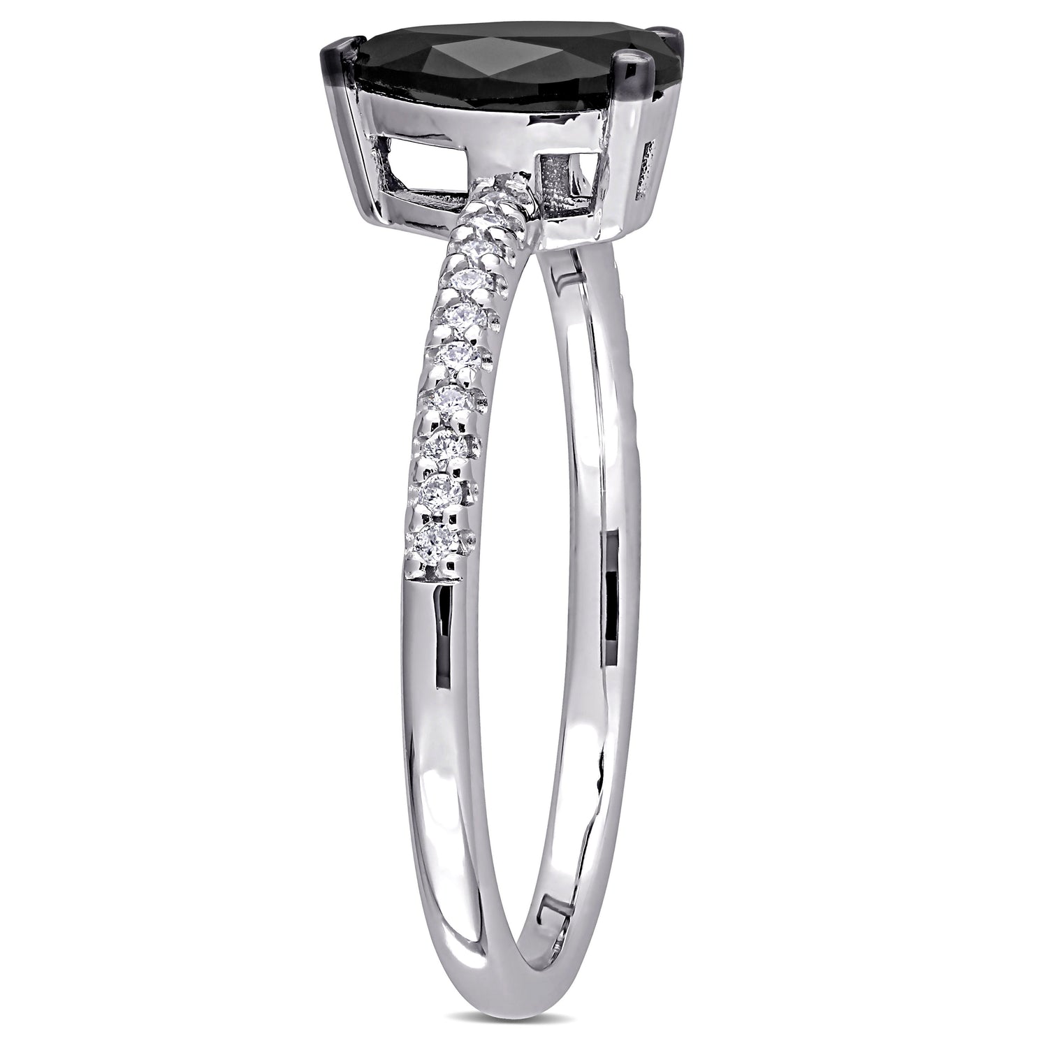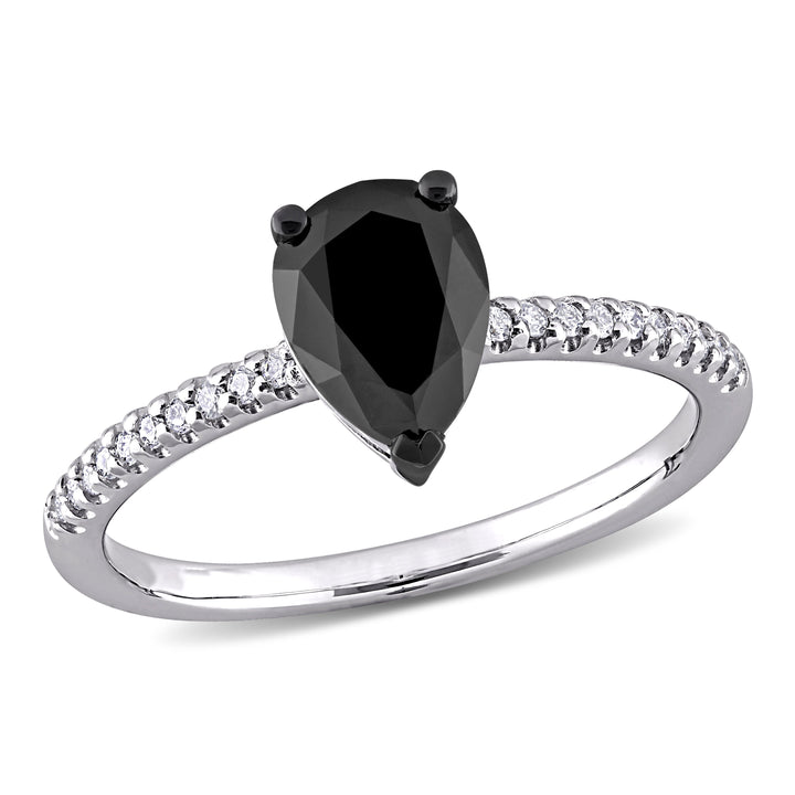 1 1/10ct TW Pear and Round-Cut Black and White Diamond Teardrop Engagement Ring in 14k White Gold