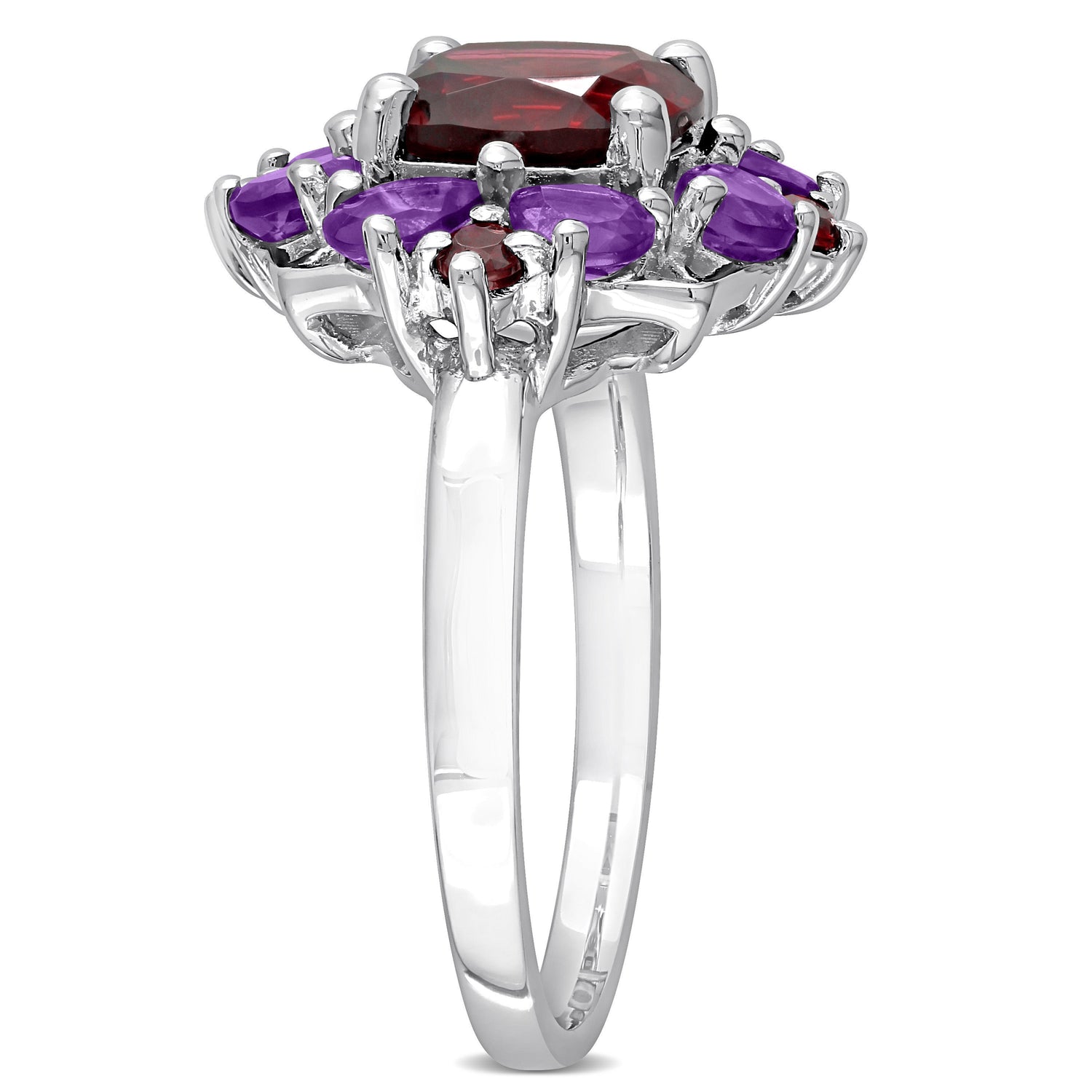 4 2/5ct TW Garnet and African Amethyst Quatrefoil Floral Ring in Sterling Silver